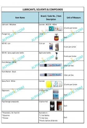 Lubricants, Solvents & Compounds